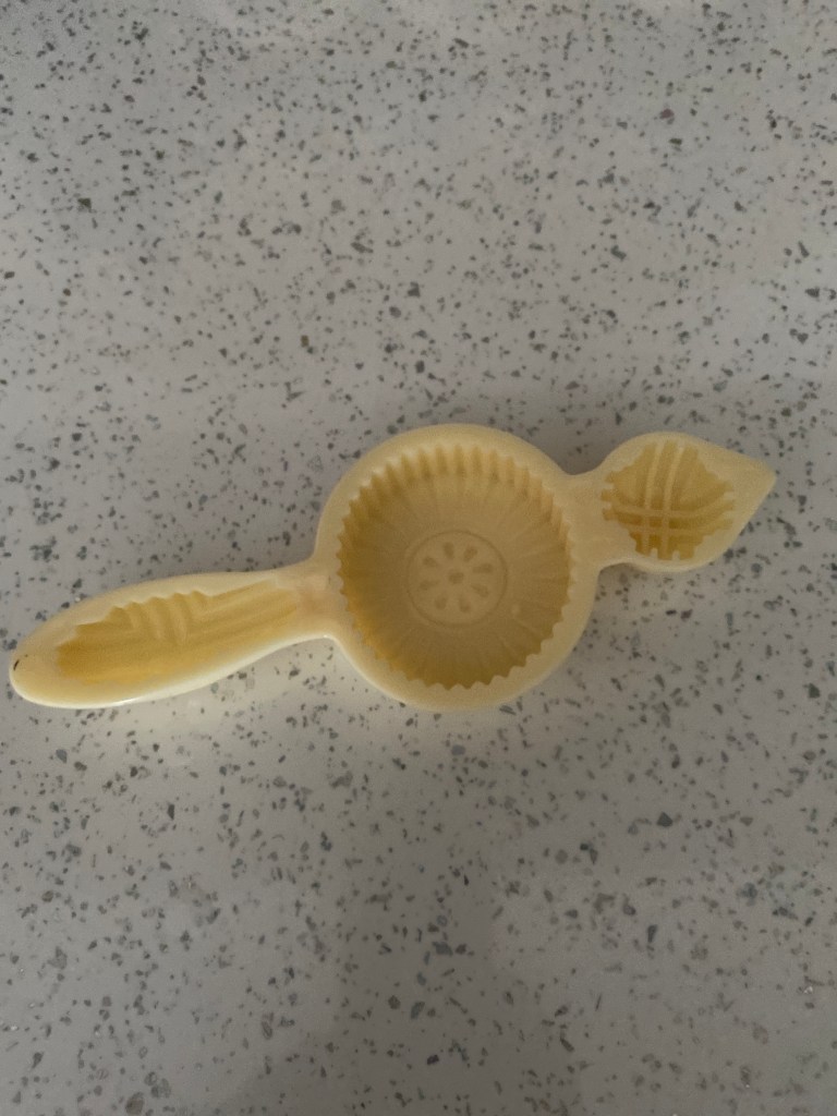 1 forma per biscotti, necessariamente che sia chiusa. 7-8 cm di diametro. Io ho scelto quella della foto, di origine araba, la trovare online. (Forma per maamoul).