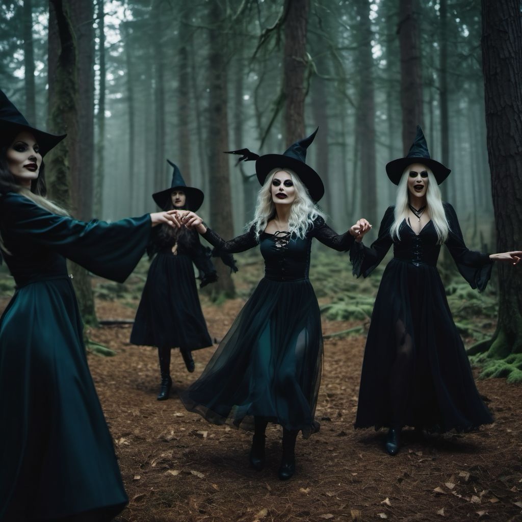 Le streghe, invece, danzavano intorno a un falò enorme, le loro figure avvolte in mantelli scuri, mentre il cielo sopra di loro ribolliva di magia. Con incantesimi e canti antichi, evocavano spirali di luce e ombre, intessendo destini e proteggendo il villaggio da forze oscure.