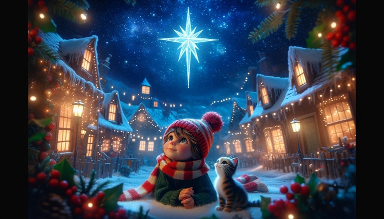 La vigilia di Natale era arrivata e il villaggio era un trionfo di luci scintillanti e melodie natalizie. Giacomo, con il suo cappellino rosso e una sciarpa a righe, era eccitato all’idea di vedere la Stella di Ghiaccio. Secondo la leggenda, chiunque vedesse la stella avrebbe avuto un anno fortunato.