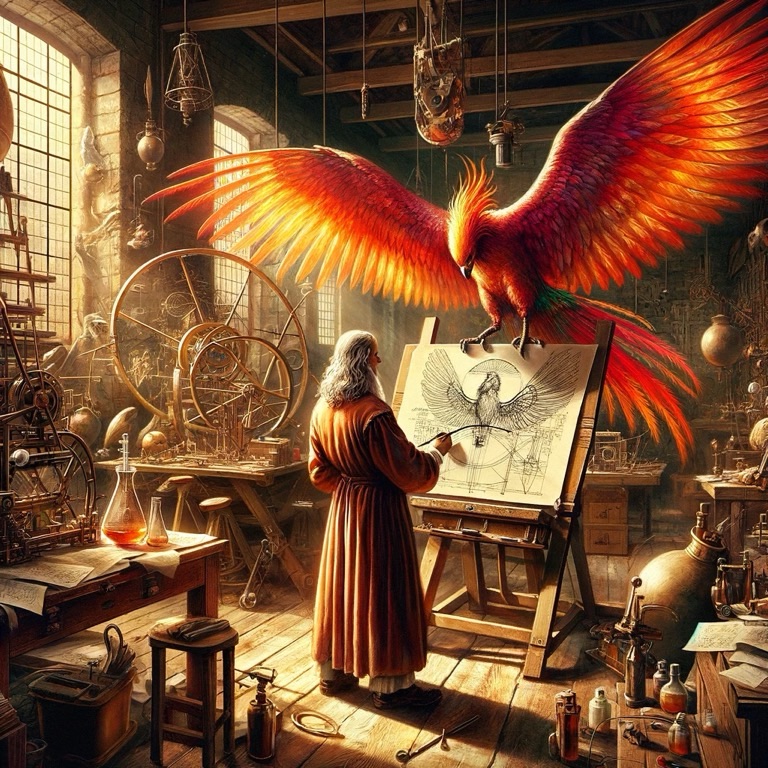 In the Renaissance, the phoenix Berenice became a muse for artists, poets, and inventors. Her image adorned canvases and poems, embodying humanity’s perpetual quest to overcome its limits and renew itself through creation. Leonardo da Vinci, inspired by her grace and her life cycle, conceived flying machines that mimicked her form. Berenice symbolized the fusion of natural beauty and human aspirations, the desire to touch the sky with the hands of creativity.