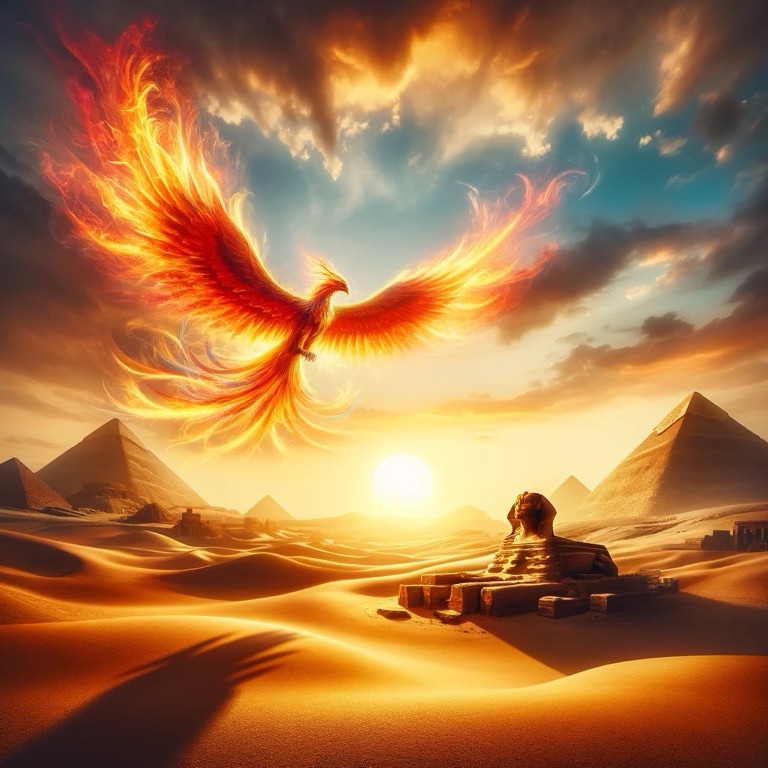 Berenice’s first life unfolded in ancient Egypt, where she became a symbol of regeneration and immortality. The priests revered her, interpreting her renewal as a sign of the Nile’s continuous rebirth, the source of life for their civilization. The pyramids, defying time, mirrored her promise of eternity. Berenice, with her fiery wings, danced in the red skies at sunset, a wish for prosperity for the lands she graced with her shadow.
