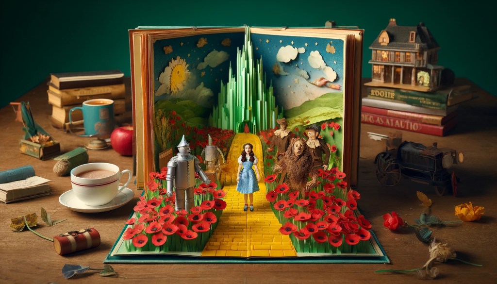 Il libro animato de “Il Mago di Oz” era una meraviglia di ingegneria cartacea. Dorothy, lo Spaventapasseri, il Boscaiolo di Latta e il Leone Codardo si alzavano dalle pagine, pronti a prendere vita con un tocco. Ogni scena del viaggio lungo la strada di mattoni gialli poteva essere esplorata in tre dimensioni, rendendo l’avventura ancora più immersiva e coinvolgente.