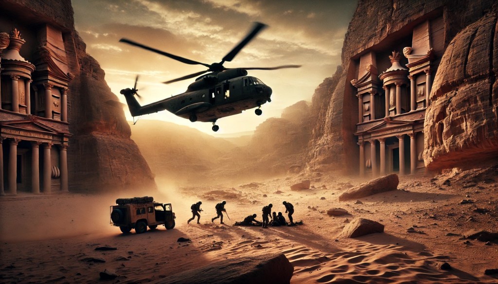 Elena aprì gli occhi a fatica, il ronzio dell’elicottero sempre più vicino sembrava squarciare il silenzio opprimente che avvolgeva le rovine di Petra. La testa le pulsava, e ogni movimento le ricordava la caduta. Accanto a lei, Jonas giaceva immobile, il viso sporco di polvere e un taglio sulla tempia che sembrava più grave di quanto ricordasse.