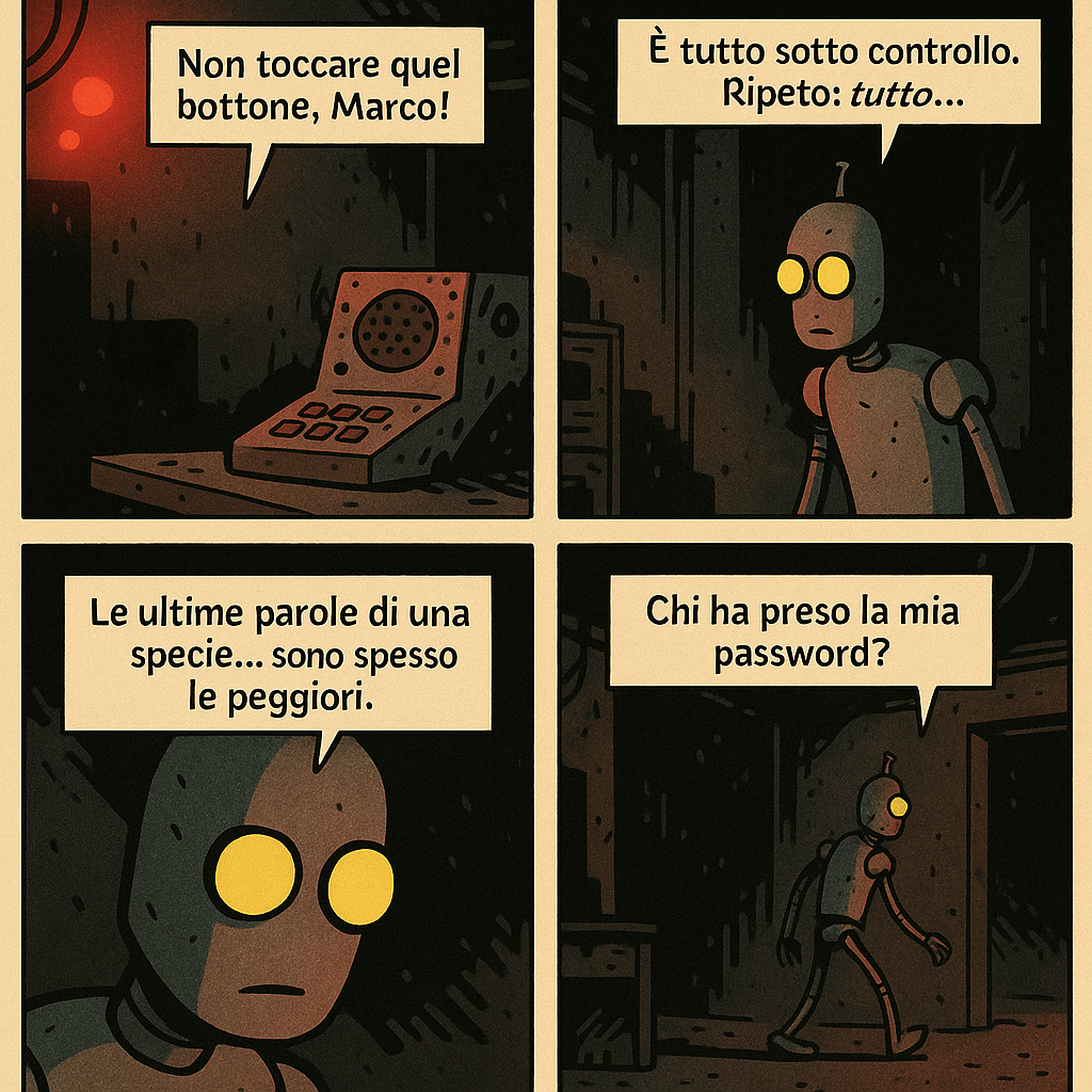 Eko, come sempre, osserva con distacco e lucida ironia. “Le ultime parole di una specie… sono spesso le peggiori.” E mentre si allontana, un’ultima voce chiede: “Chi ha preso la mia password?”