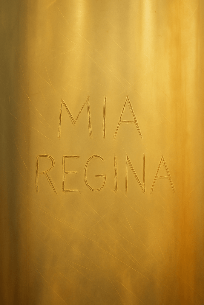 Una porta a battente rivelò, tra riflessi metallici, un’ombra verticale che scompariva nello scatto successivo. Poi, la tenda in PVC della sala refrigerata: graffi, opacità, e… tre parole che sembravano incise: MIA REGINA.